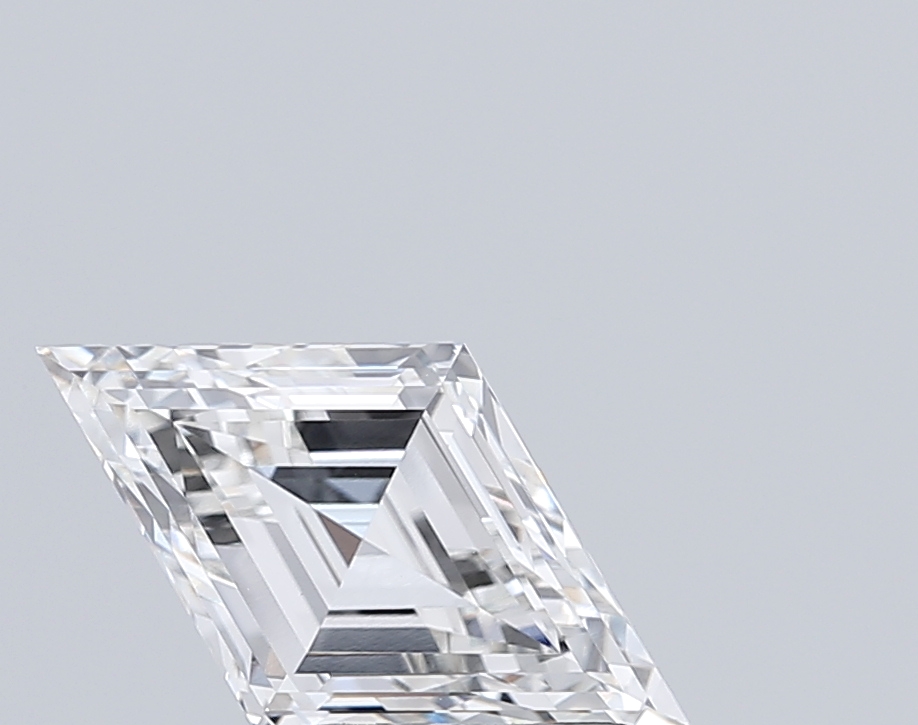 High-clarity lab-grown lozenge diamond with crisp step cuts and elegant proportions.