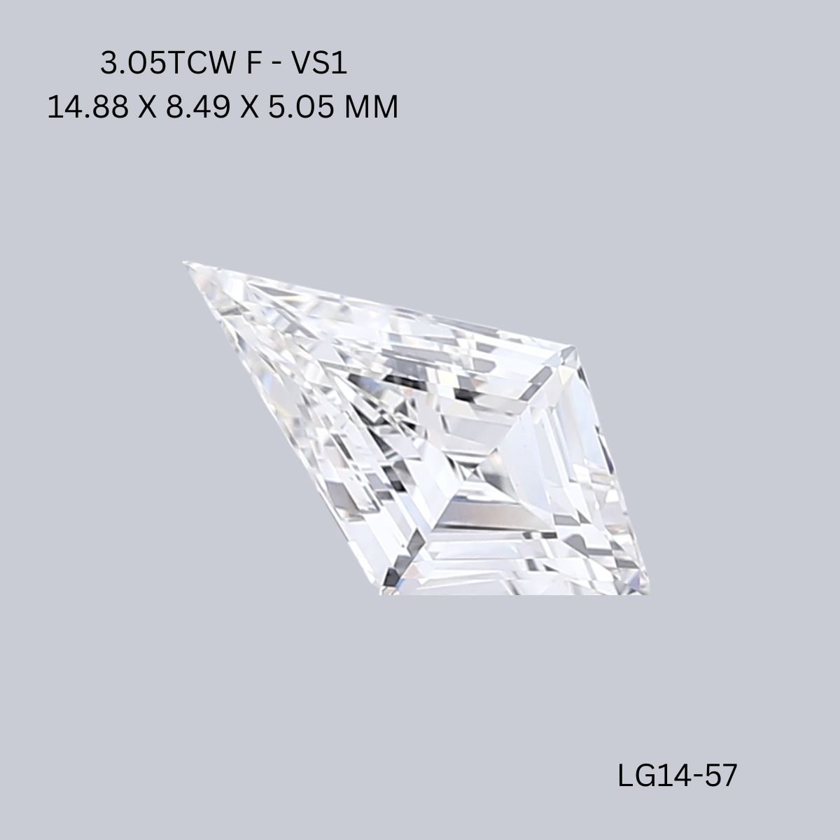 Carat: 3.05 | Color: F | Clarity: VS | MM: 14.88 x 8.49 x 5.05 | SKU: LG14-57