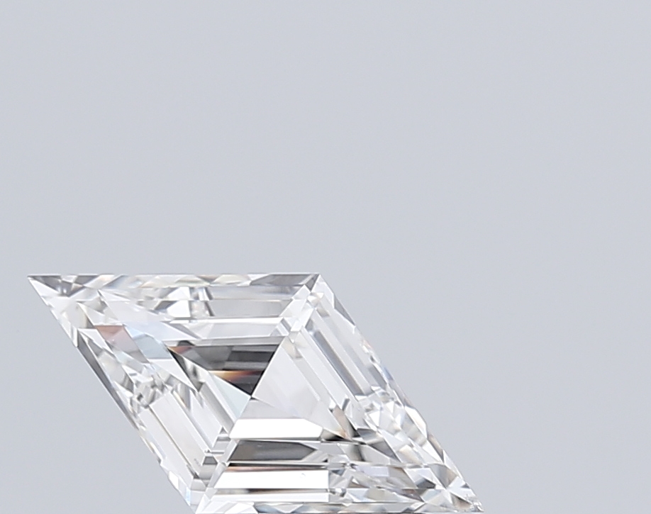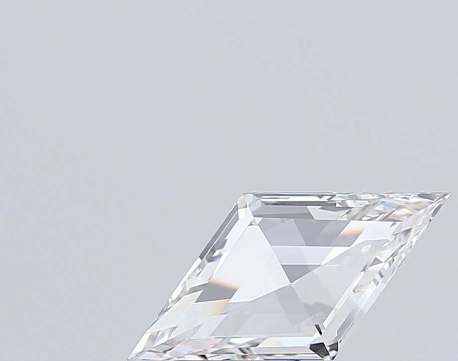 Elongated lab-grown lozenge diamond featuring strong geometry and refined step faceting.