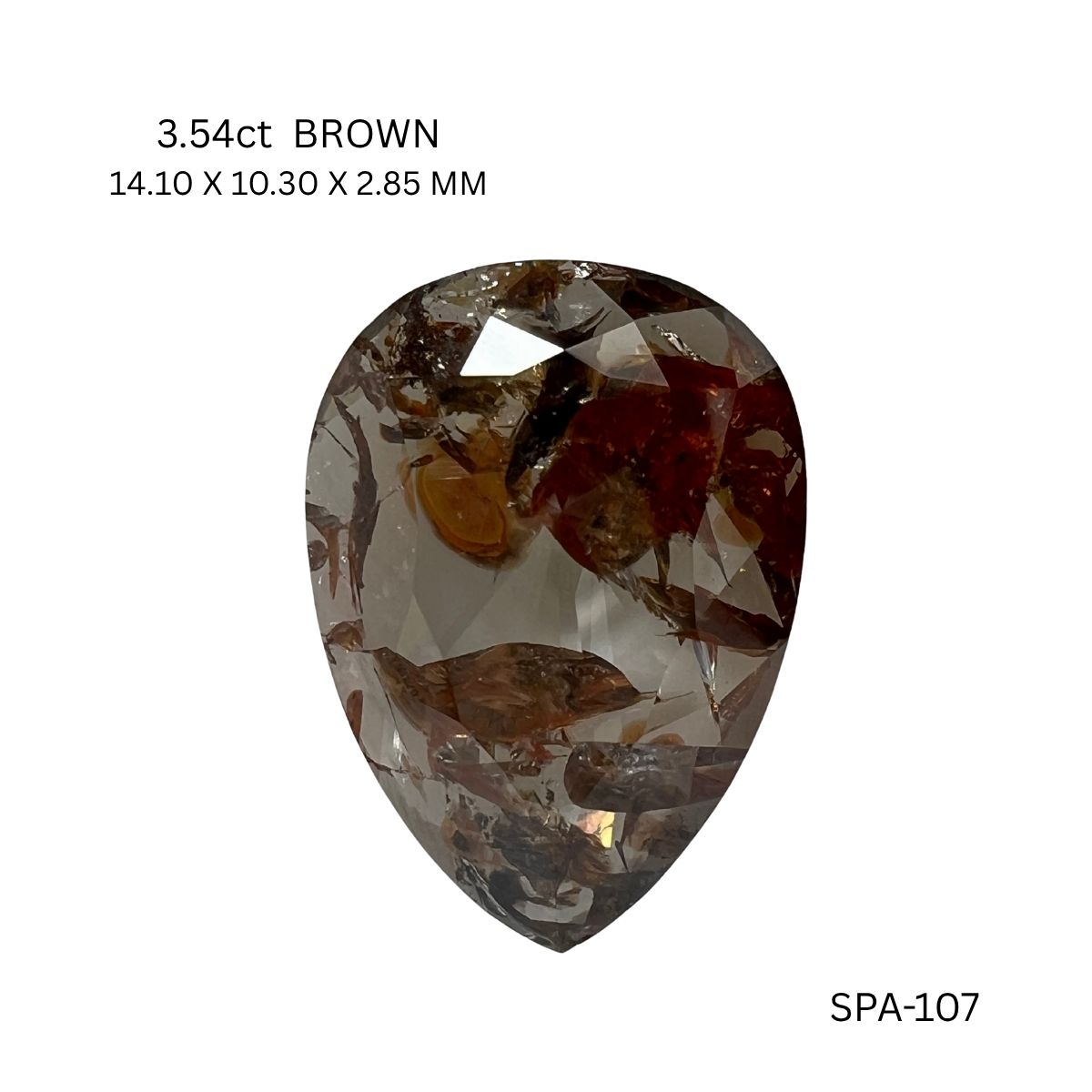 Earthy, expressive, and naturally elegant, this natural salt-and-pepper pear-shaped rose-cut diamond from OM Jewels Inc is a beautiful celebration of individuality and organic charm. Displaying a refined brownish body tone, the diamond reveals soft warmth and depth, enriched by natural inclusions that create texture, movement, and a distinctive visual identity unique to each stone.